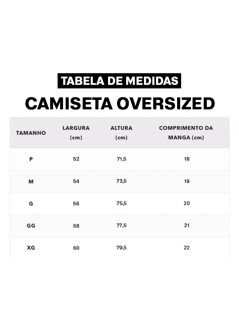 A Camiseta Oversized é ideal para quem busca conforto, estilo urbano e caimento moderno. Com corte amplo e mangas largas, proporciona uma silhueta relaxada e despojada, perfeita para looks casuais, streetwear ou minimalistas.