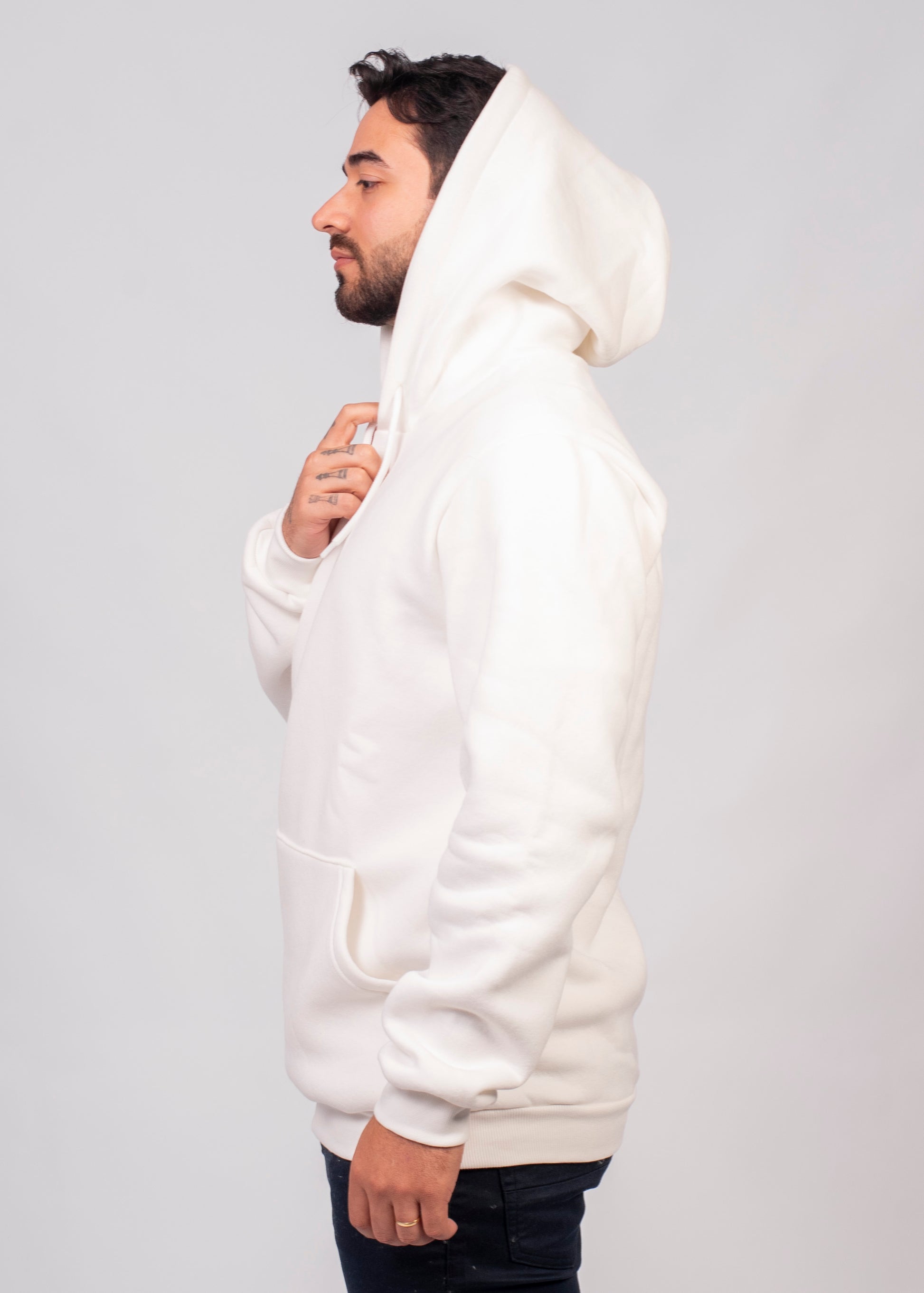 Moletom canguru superconfortável, feito com 50% algodão e 50% poliéster, com gramatura de 360 g/m². Ideal para os dias frios, garantindo aconchego e estilo.